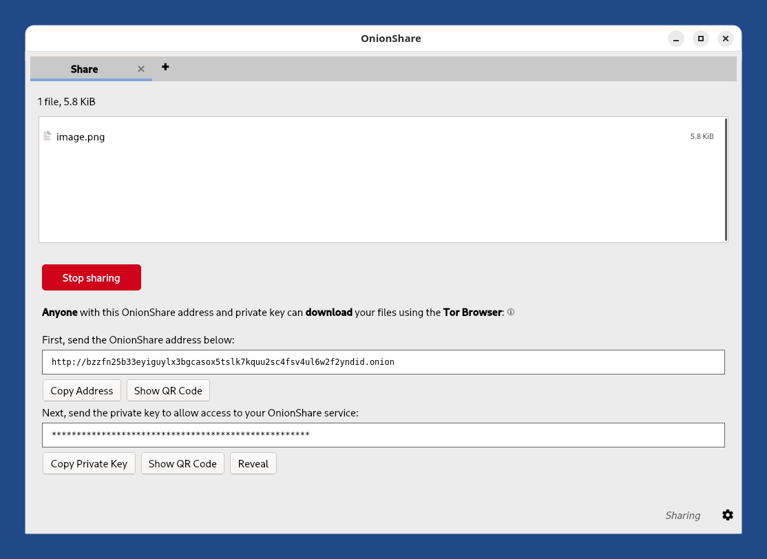 À la différence de la plupart des services Internet, les personnes utilisant vos services OnionShare se connectent directement à votre Tails à travers le réseau Tor. Vos données ne sont jamais stockées ou partagées avec un serveur tiers. Votre Tails devient un serveur temporaire et anonyme.