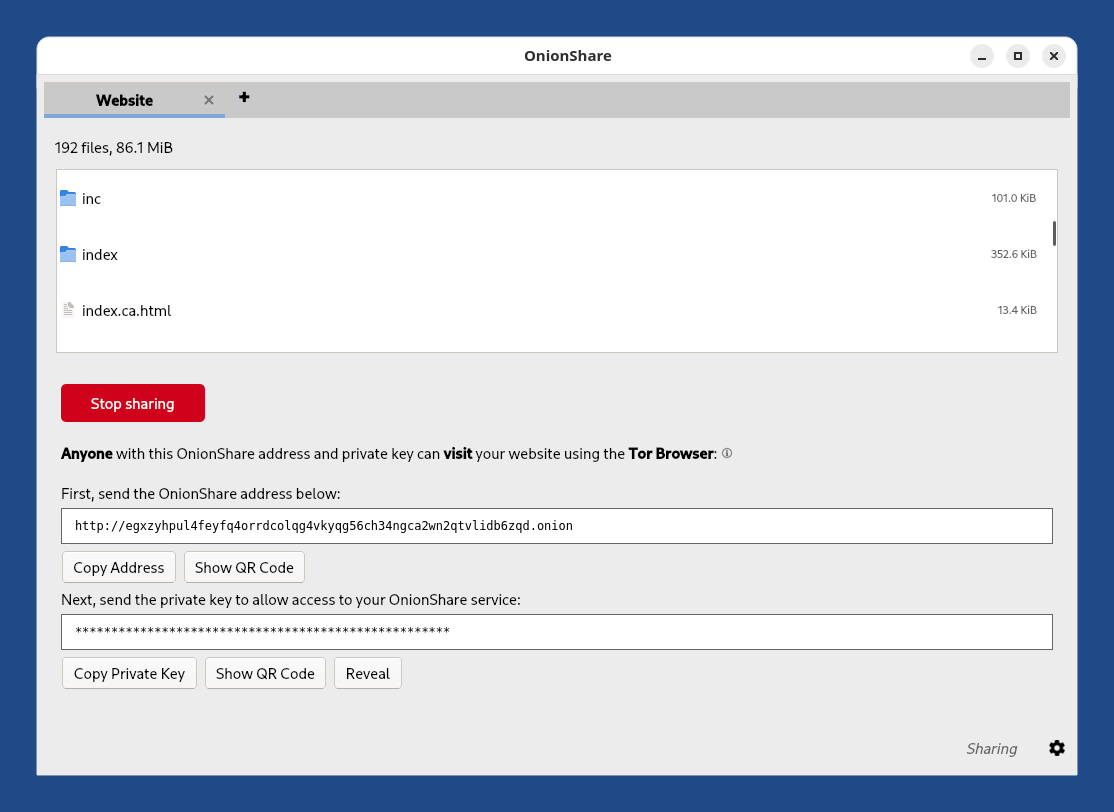Avec le service Site Web de OnionShare :
